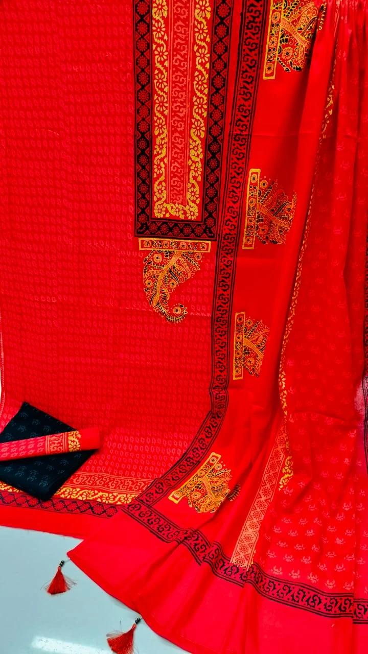 -কামিজ : অর্ক ভয়েল এর উপর হাইকোয়ালিটি ব্লক প্রিন্ট করা।