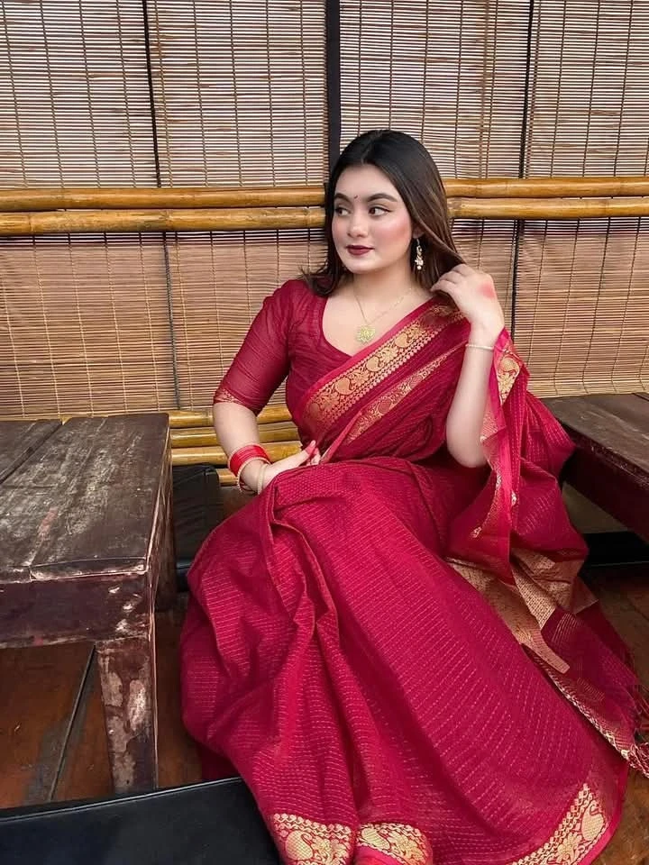 খুবই সুন্দর কটন চেক শাড়ি,এটাকে কাঁথা সেলাই শাড়িও বলে,সাথে রানিং ব্লাউজ পিস দেওয়া আছেl