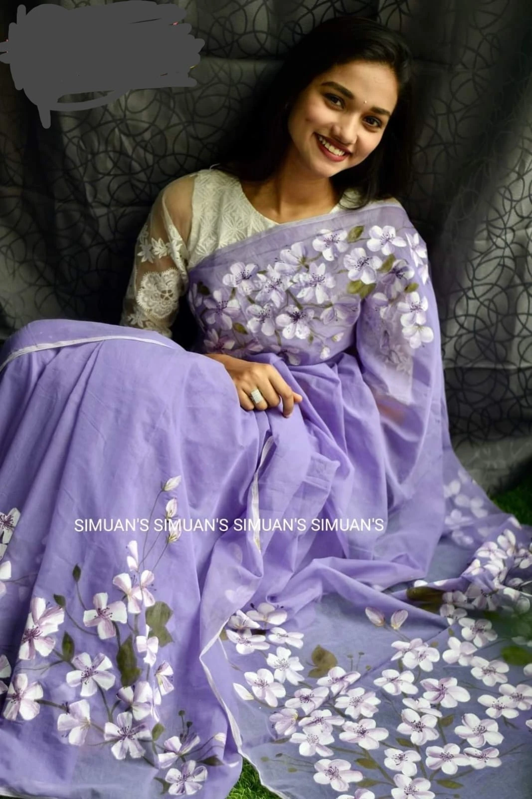 হাফসিল্ক শাড়ীতে হ্যান্ডপ্রিন্ট তুলির কাজ করা
