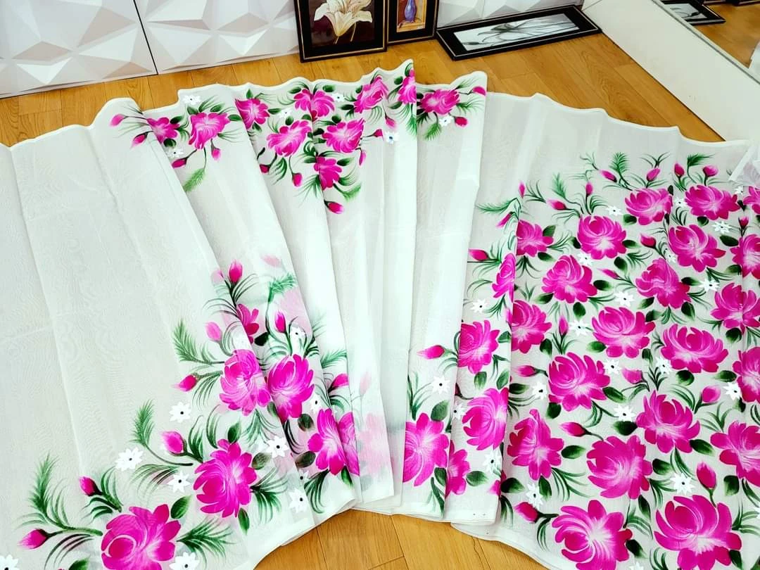 হাফসিল্ক শাড়ীতে হ্যান্ডপ্রিন্ট তুলির কাজ করা