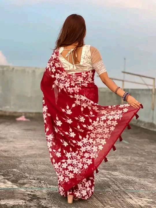হাফসিল্ক ব্লক প্রিন্ট শাড়ী