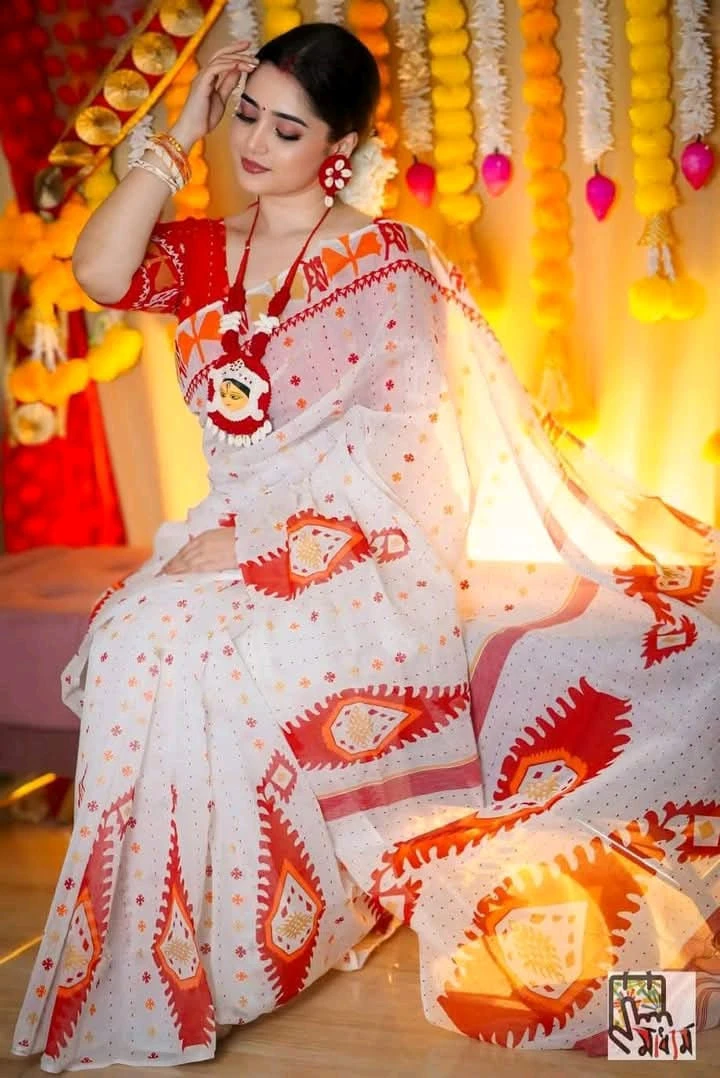 হাফসিল্ক ব্লক প্রিন্ট শাড়ী