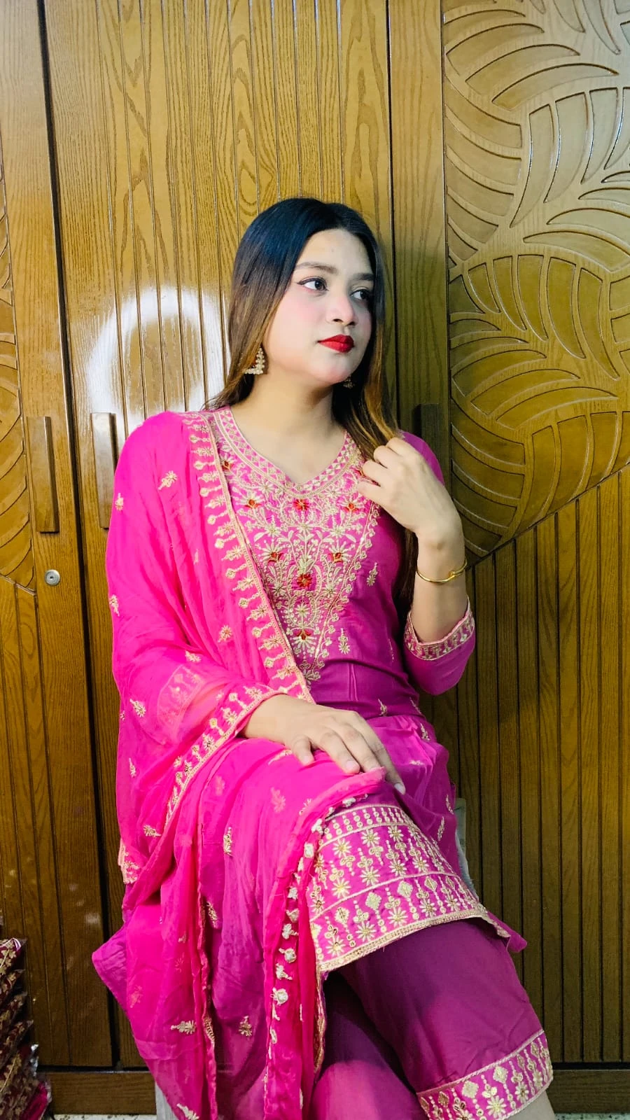 ওড়না চিকন জর্জেট এমব্রয়ডারি কাজ করা