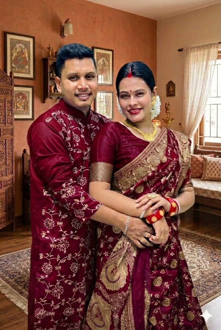 ব্লক প্রিন্ট কাজ করা ম্যাচিং পাঞ্জাবি।