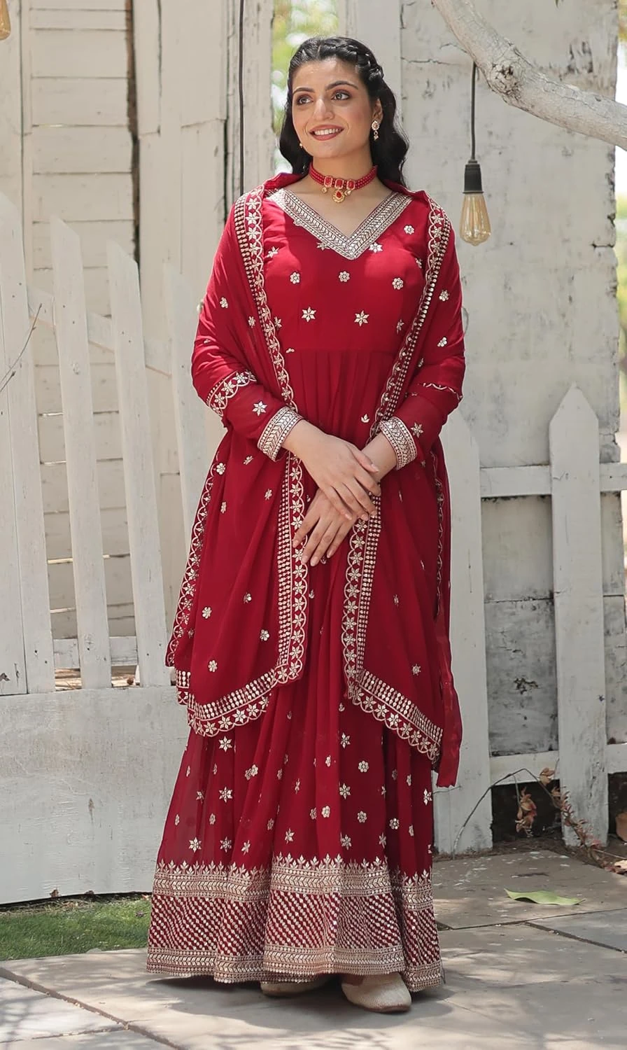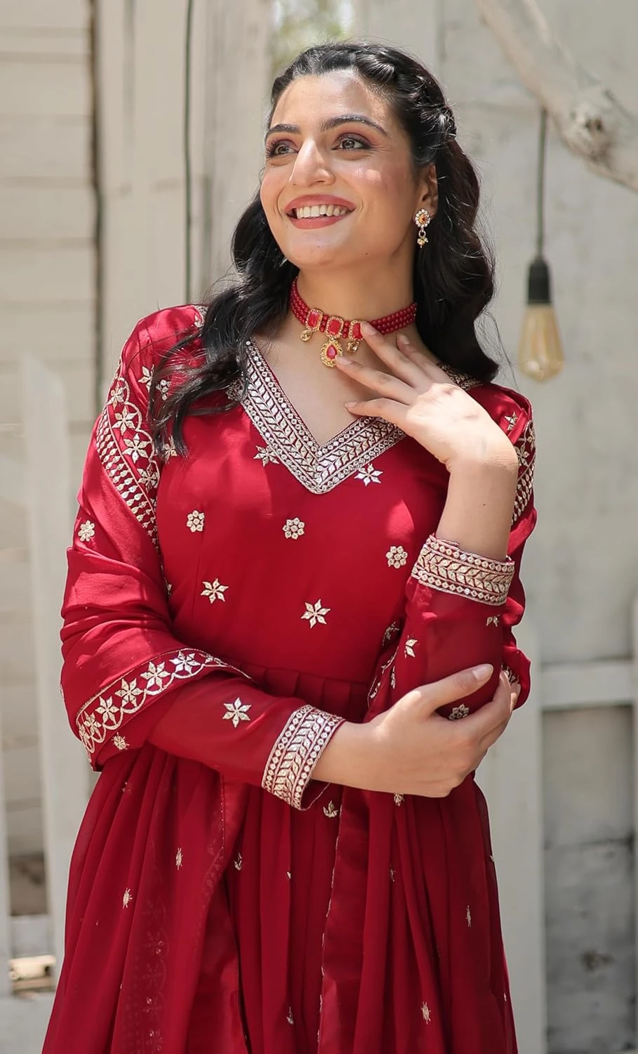 অল ওভার এমব্রয়ডারি সিকোয়েন্স + জরি এমব্রয়ডারি কাজ করা।